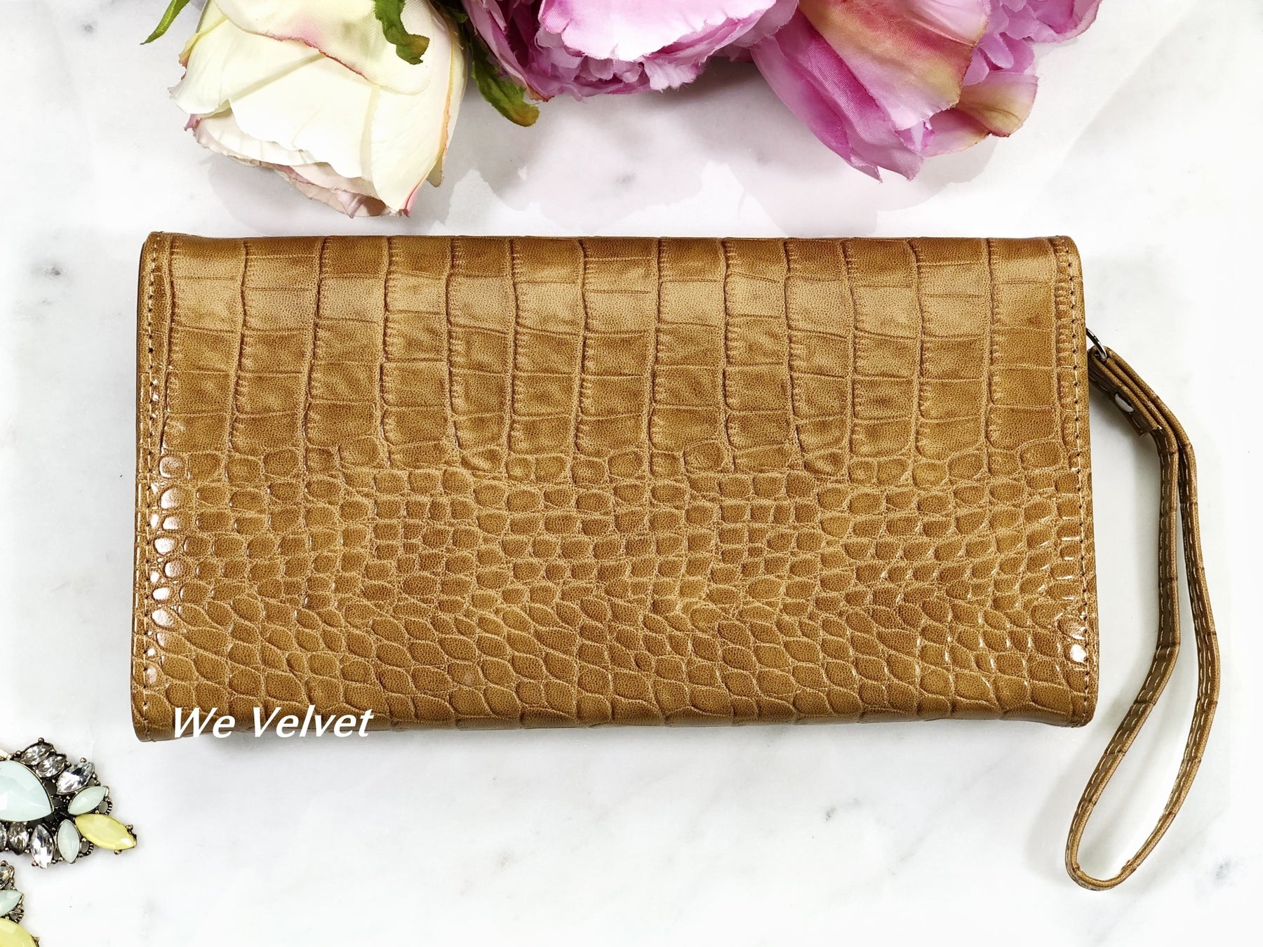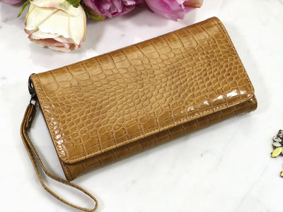 Portofel caramel piele eco cu imprimeu croco Ruben