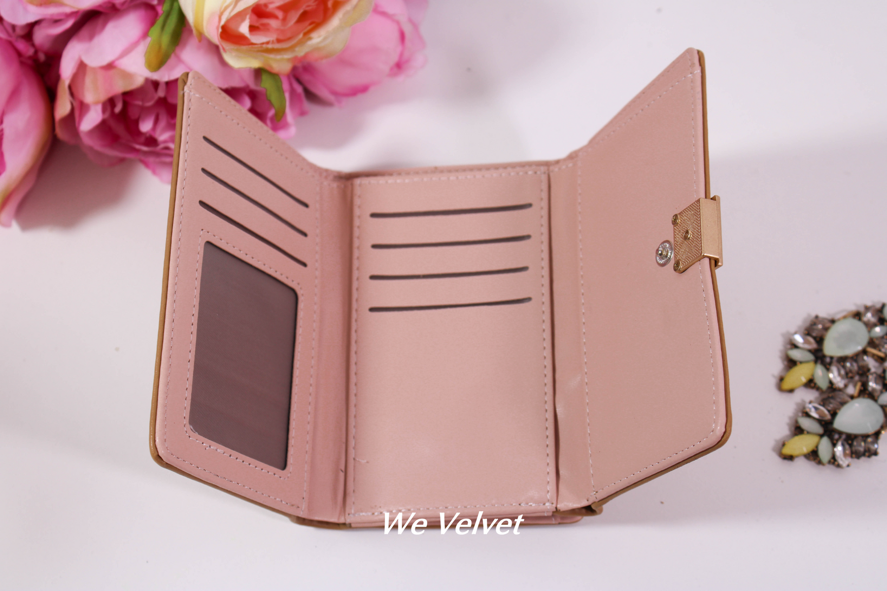 Portofelul din piele eco Ellaborate este alegerea ideală atunci când ai nevoie de un accesoriu de dimensiuni mai mici dar care să cuprindă tot universul tău. Este dotat cu un buzunar exterior cu închidere tip clutch, pentru toate lucrurile mărunte!