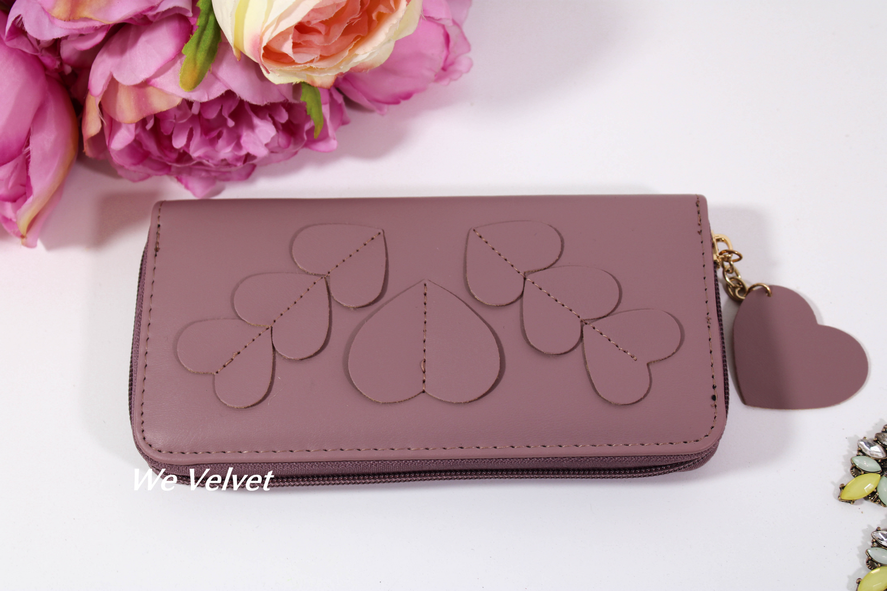 Portofelul din piele eco Avery este cel mai râvnit accesoriu al momentului! Superbul model We Velvet este decorat la exterior cu inimioare, pentru a-ți face ziua cât mai plăcută!