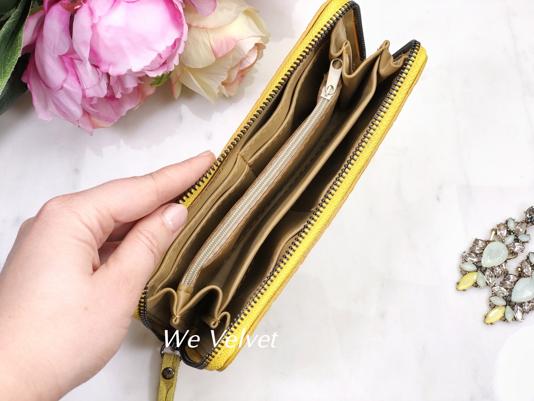 • Dispune de 8 compartimente pentru carduri, 3 compartimente pentru bancnote și documente și un compartiment special cu fermoar pentru monede