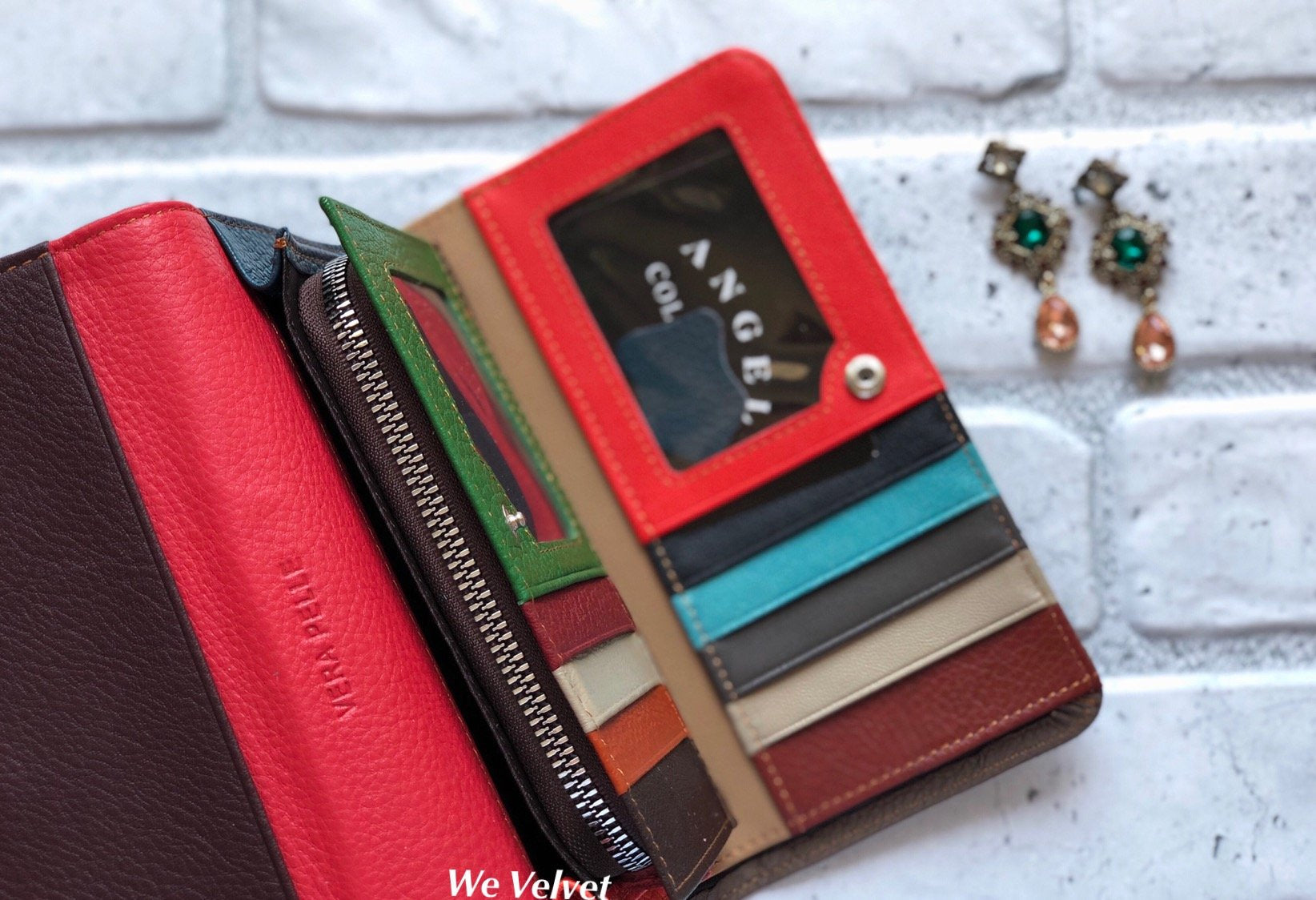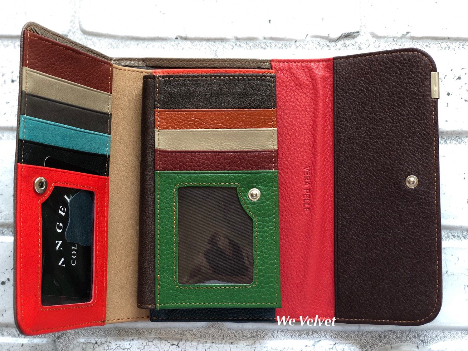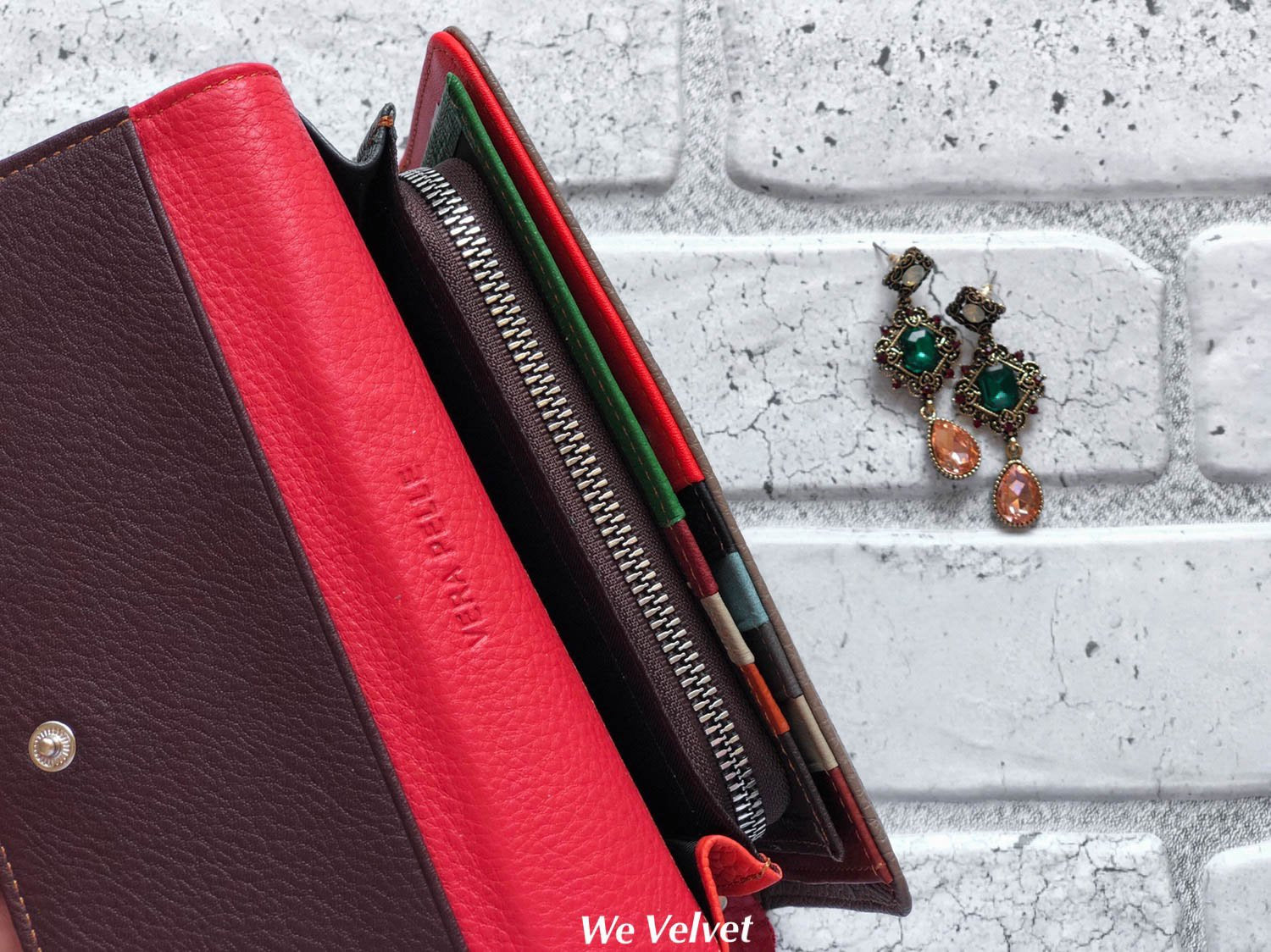 • Dispune de 3 buzunare pentru bancnote, 8 compartimente pentru carduri și cărți de vizită, și un buzunar cu fermoar pentru monede