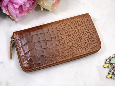 Impreimeul croco este de departe un must-have în rândul accesoriilor, iar portofelul Ignacio, din piele naturală, îndeplinește chiar și cele mai stricte standarde de calitate. Culorile delicate și cusăturile fine vor pune în evidență bunul gust și te vor surprinde cu durabilitatea, în timp. Închiderea cu fermoar îți asigură păstrarea în siguranță a tuturor lucrurilor depozitate înauntru, iar compartimentarea acestuia îți va permite să ai toate cardurile, bancnotele și monedele în același portofel.