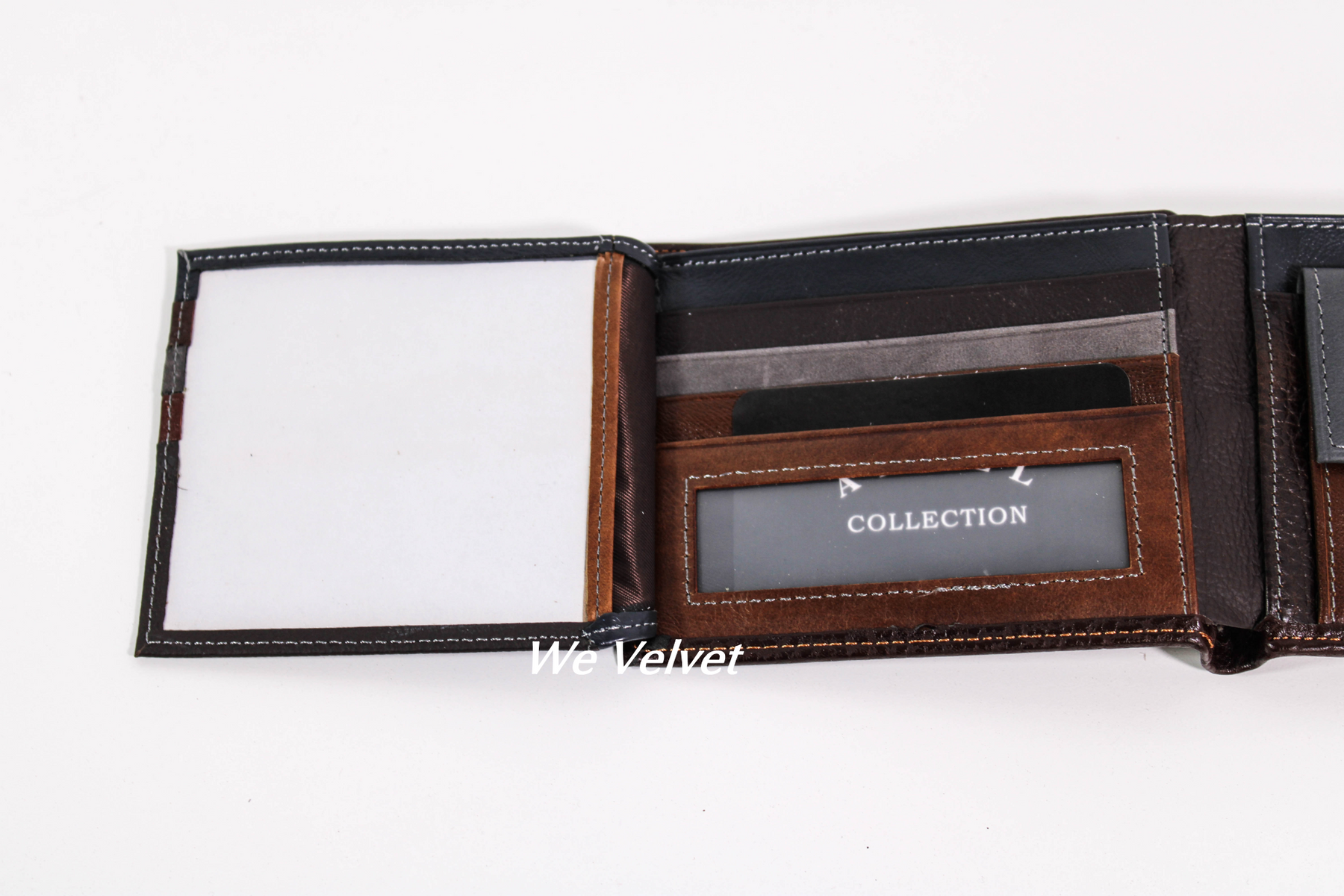 - Dispune de 8 compartimente pentru carduri, 4 compartimente pentru documente, un buzunar cu capsă și un buzunar cu două compartimente pentru bancnote