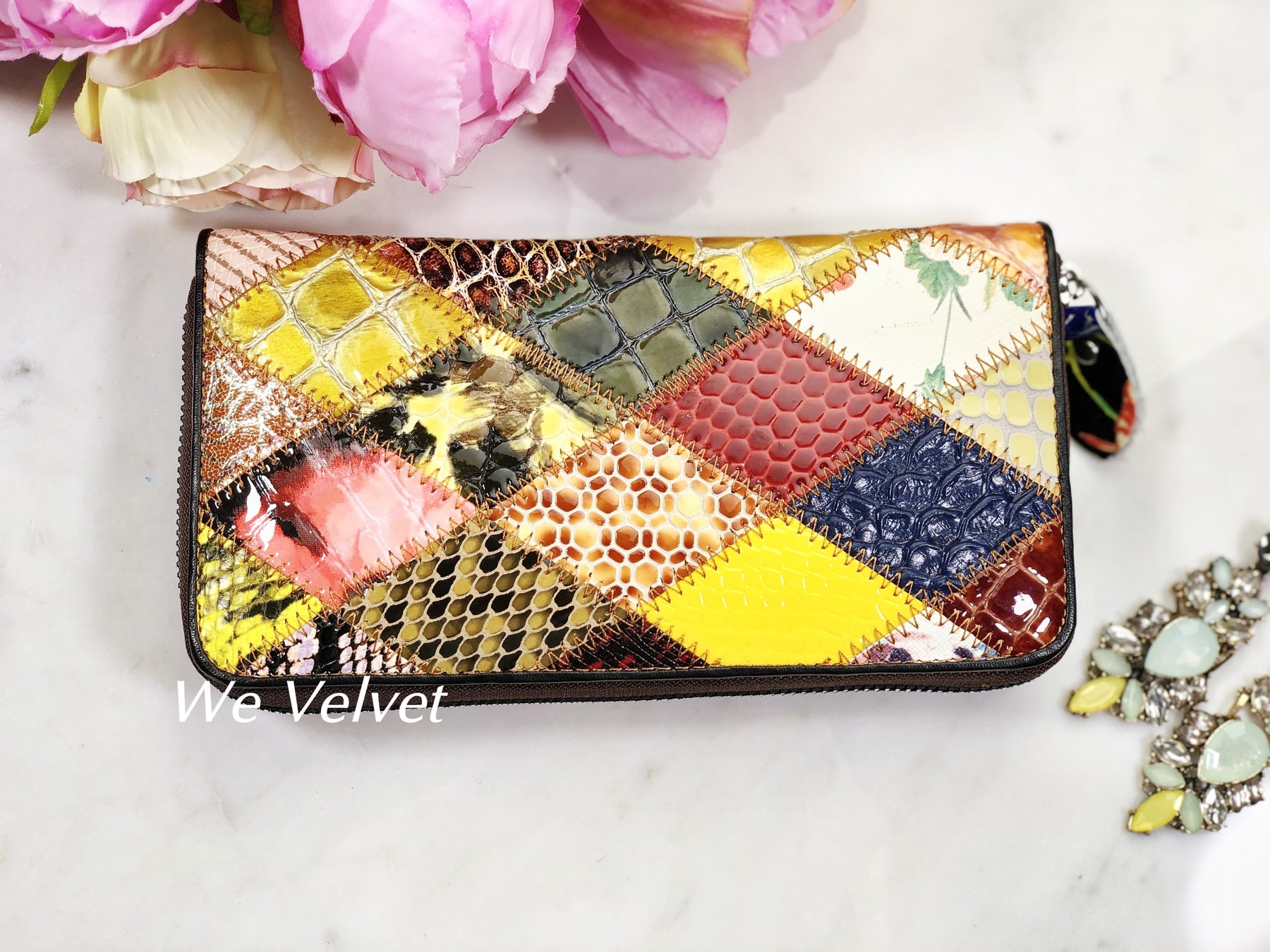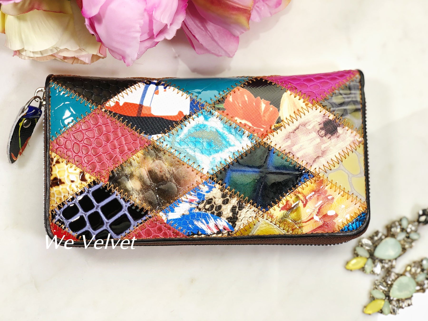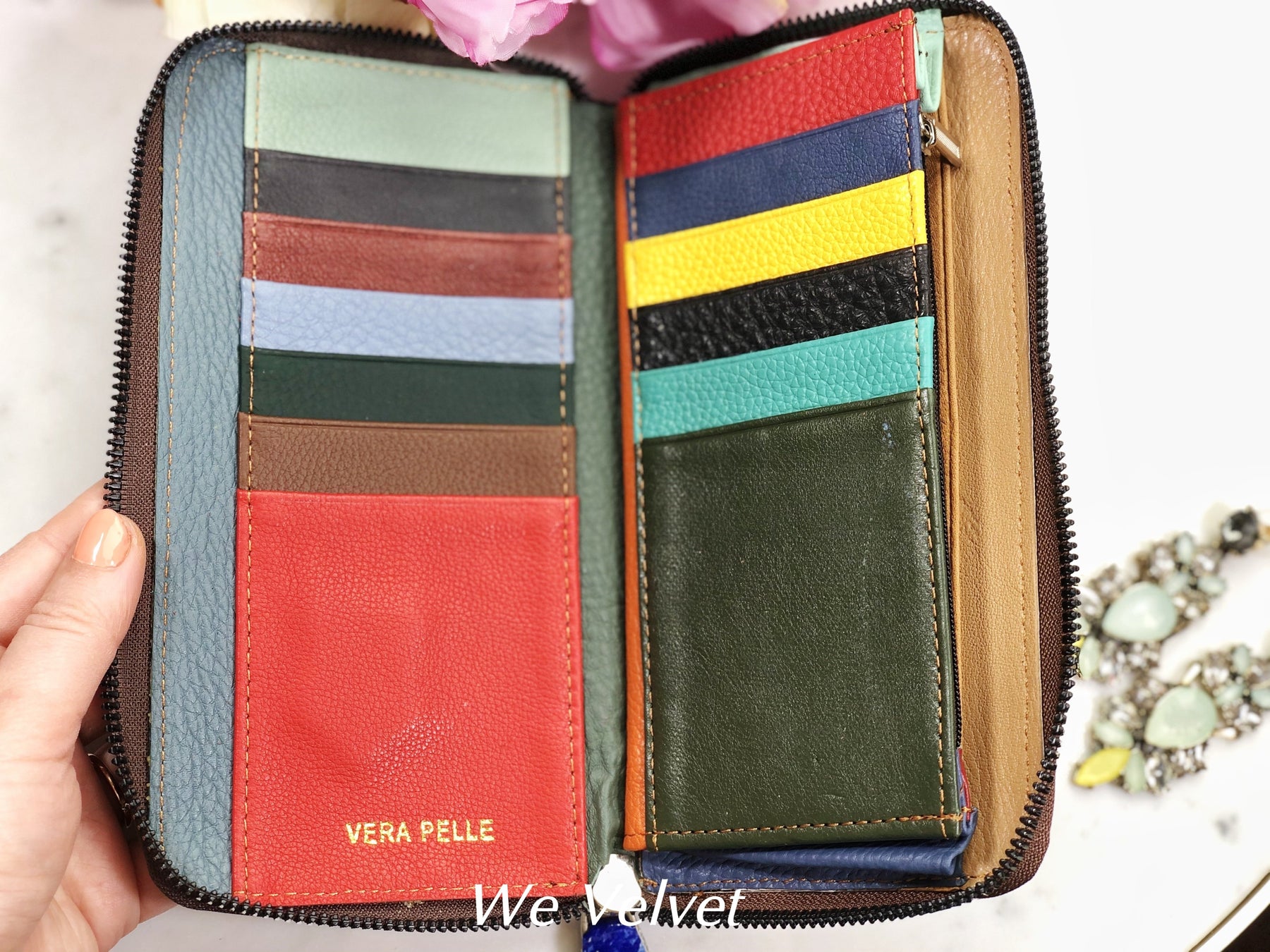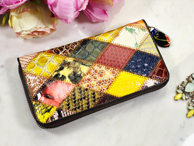 Portofel multicolor piele naturală cu accente nude Eden