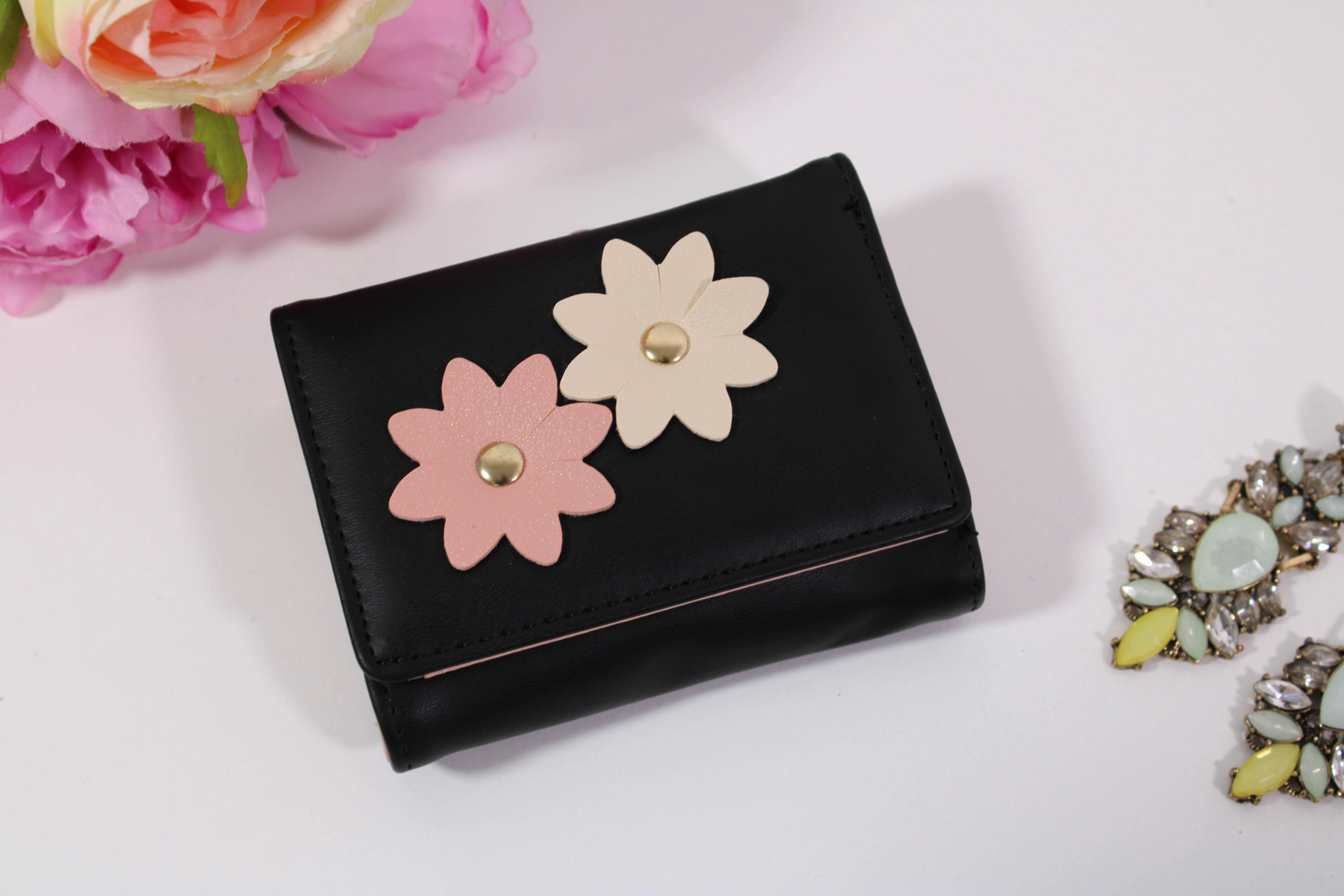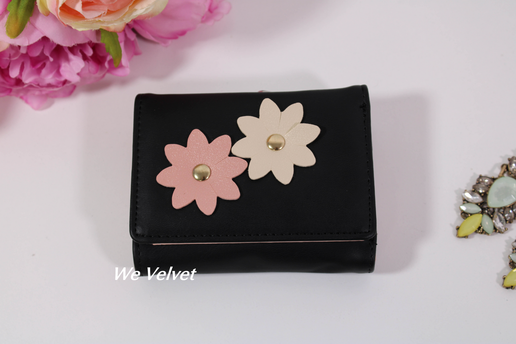 Portofelul Clara din piele ecologciă este un model We Velvet potrivit atât pentru doamne cât și pentru domnișoare de toate vârstele mulțumită dimensiunilor reduse și al aplicațiilor florale!