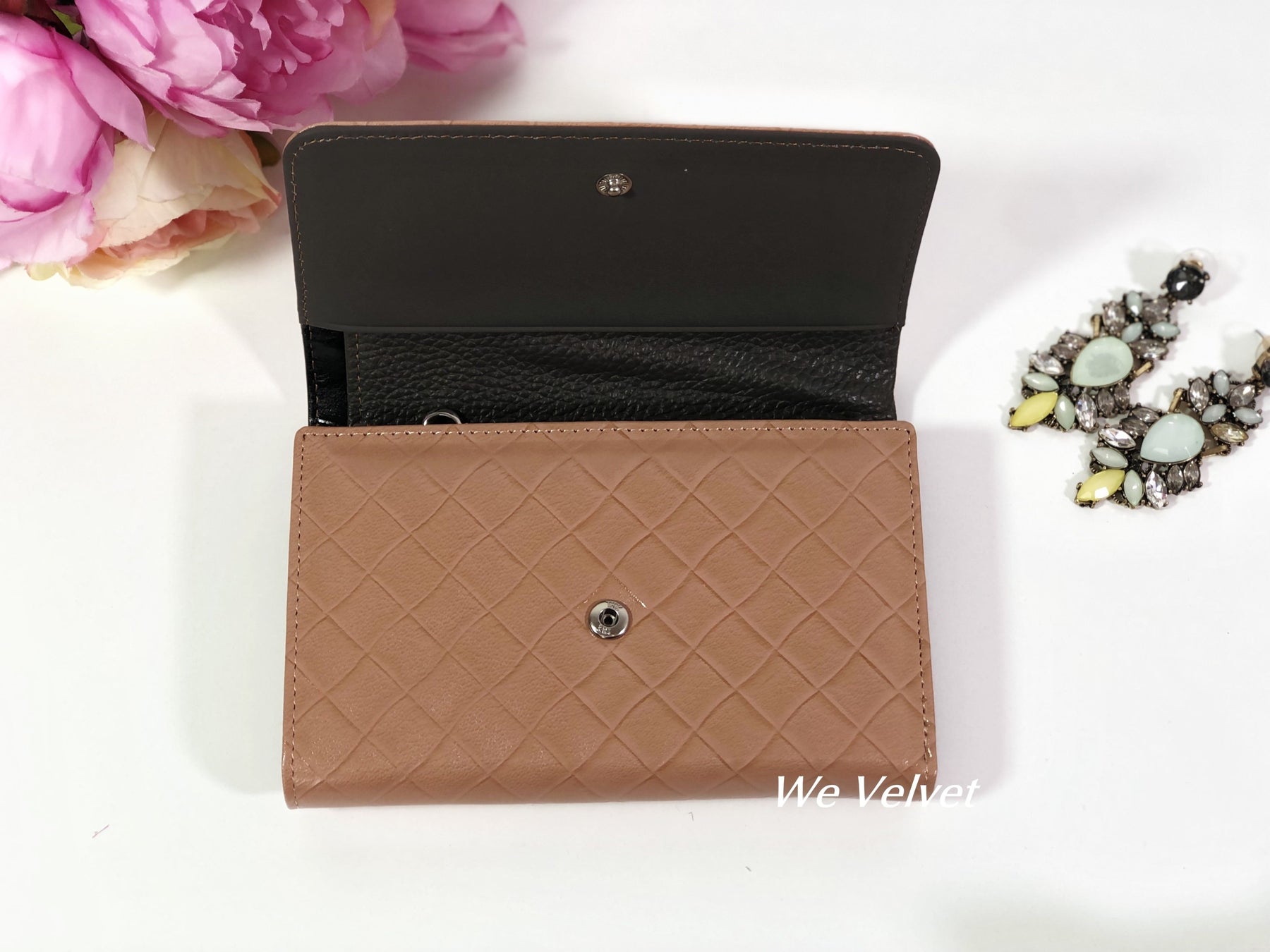 Un portofel compact, ideal pentru gentuțele medii spre mici, care se potrivește perfect în mână și îți oferă un plus de stil datorită texturii sale unice.