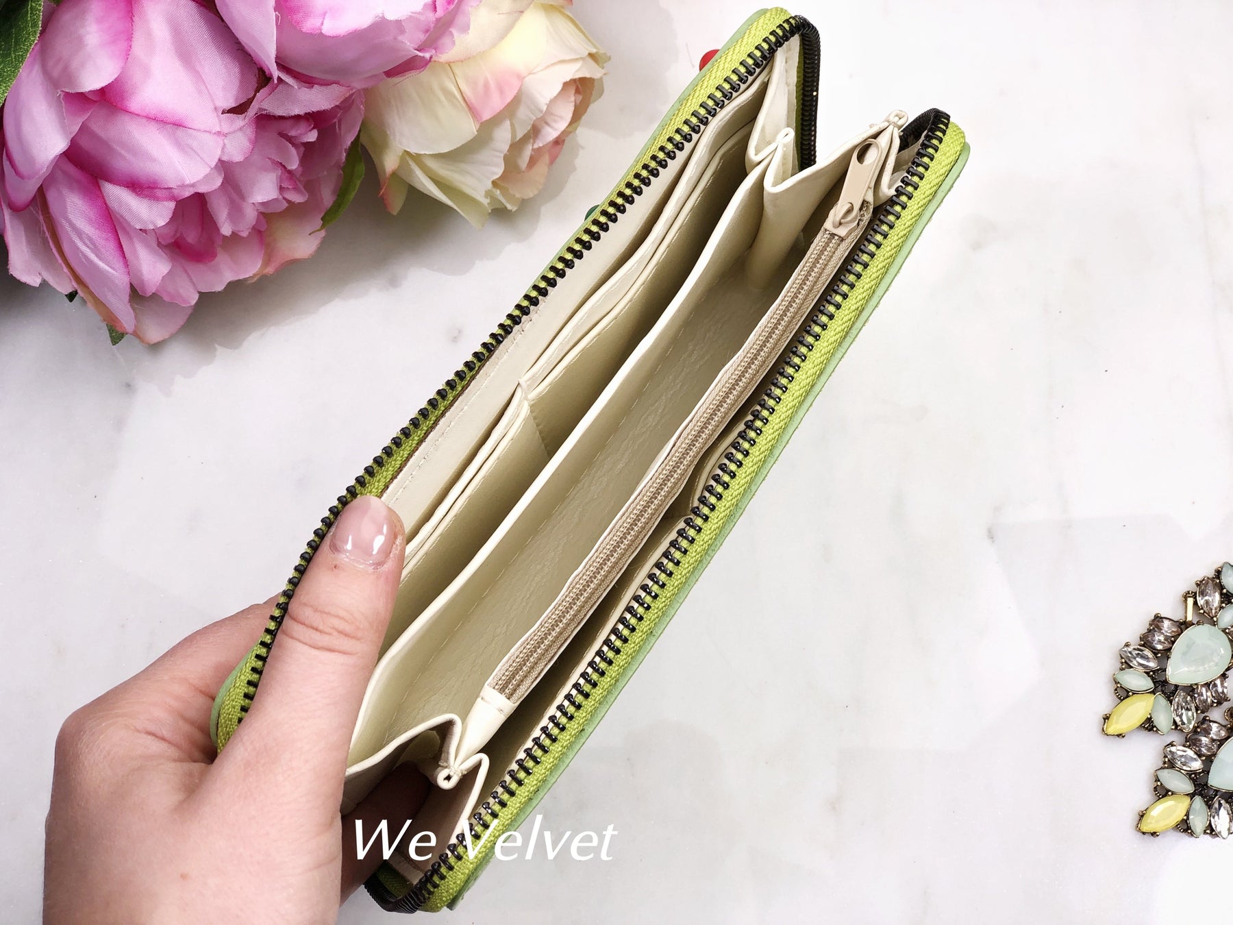 - Dispune de 8 compartimente pentru carduri, 3 compartimente pentru bancnote și documente și un compartiment special cu fermoar pentru monede