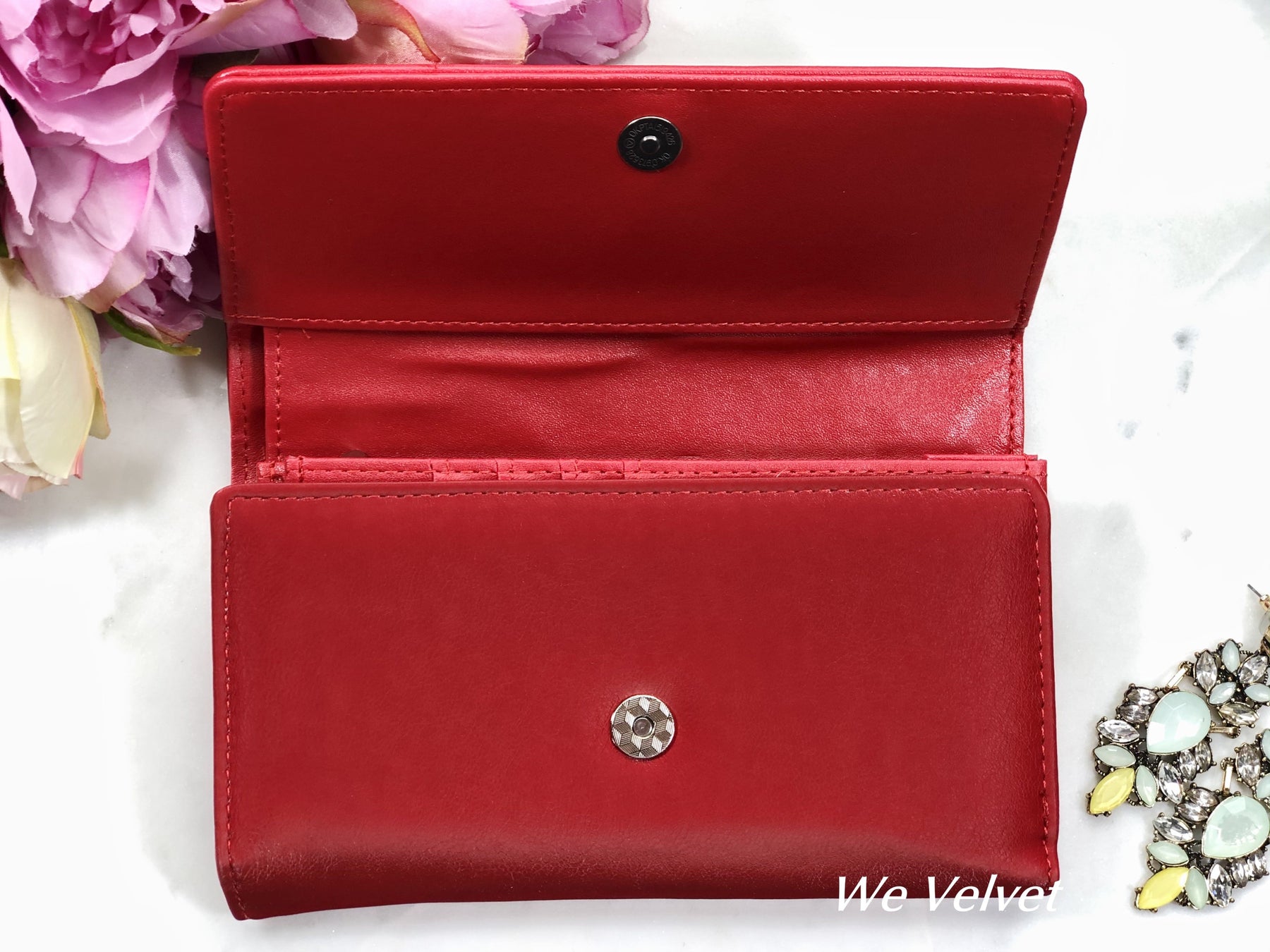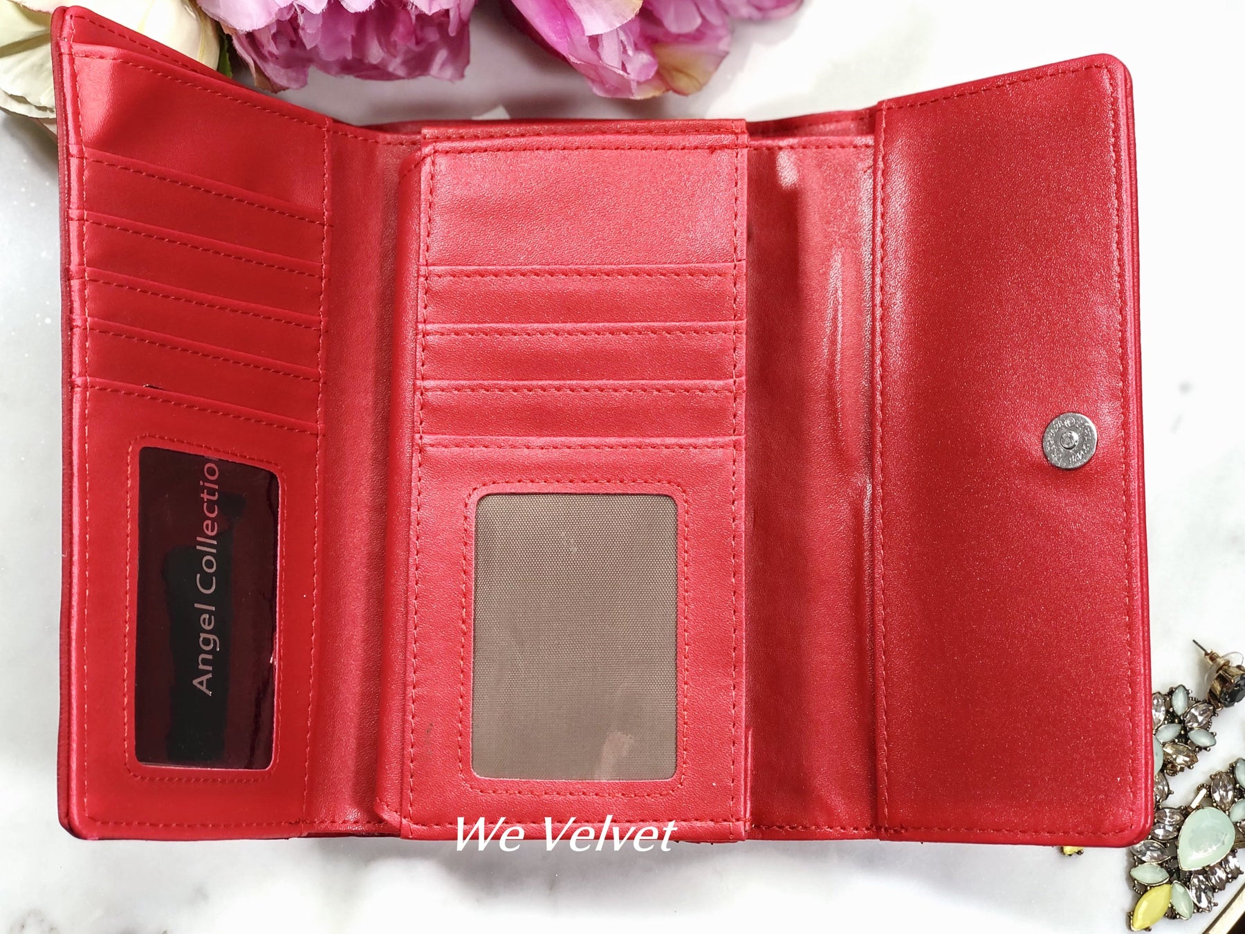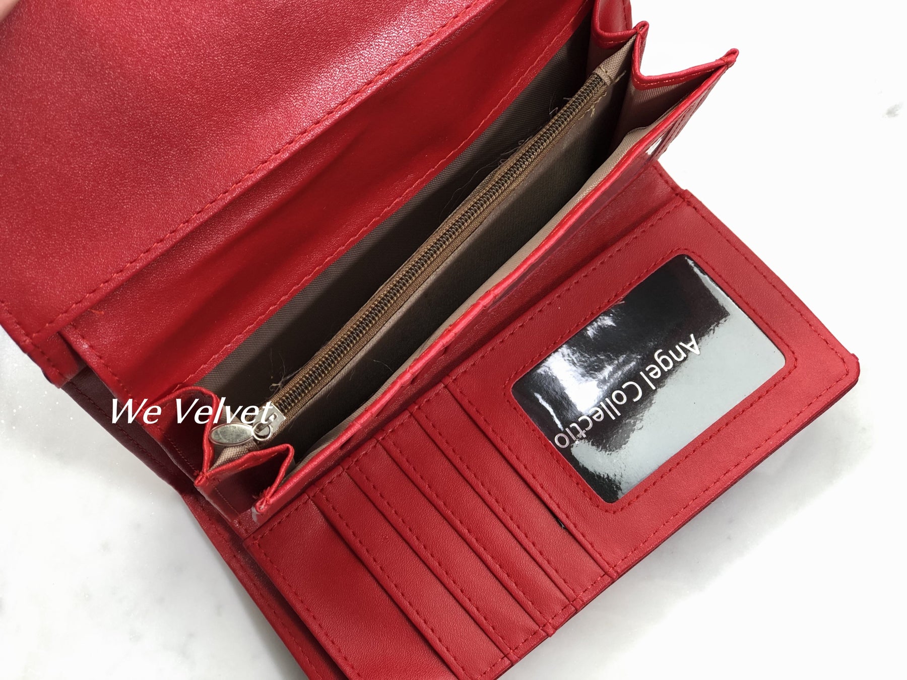 • Dispune de 9 compartimente petru carduri, 3 compartimente pentru documente, un compartiment pentru bancnote și un buzunar cu fermoar pentru monede