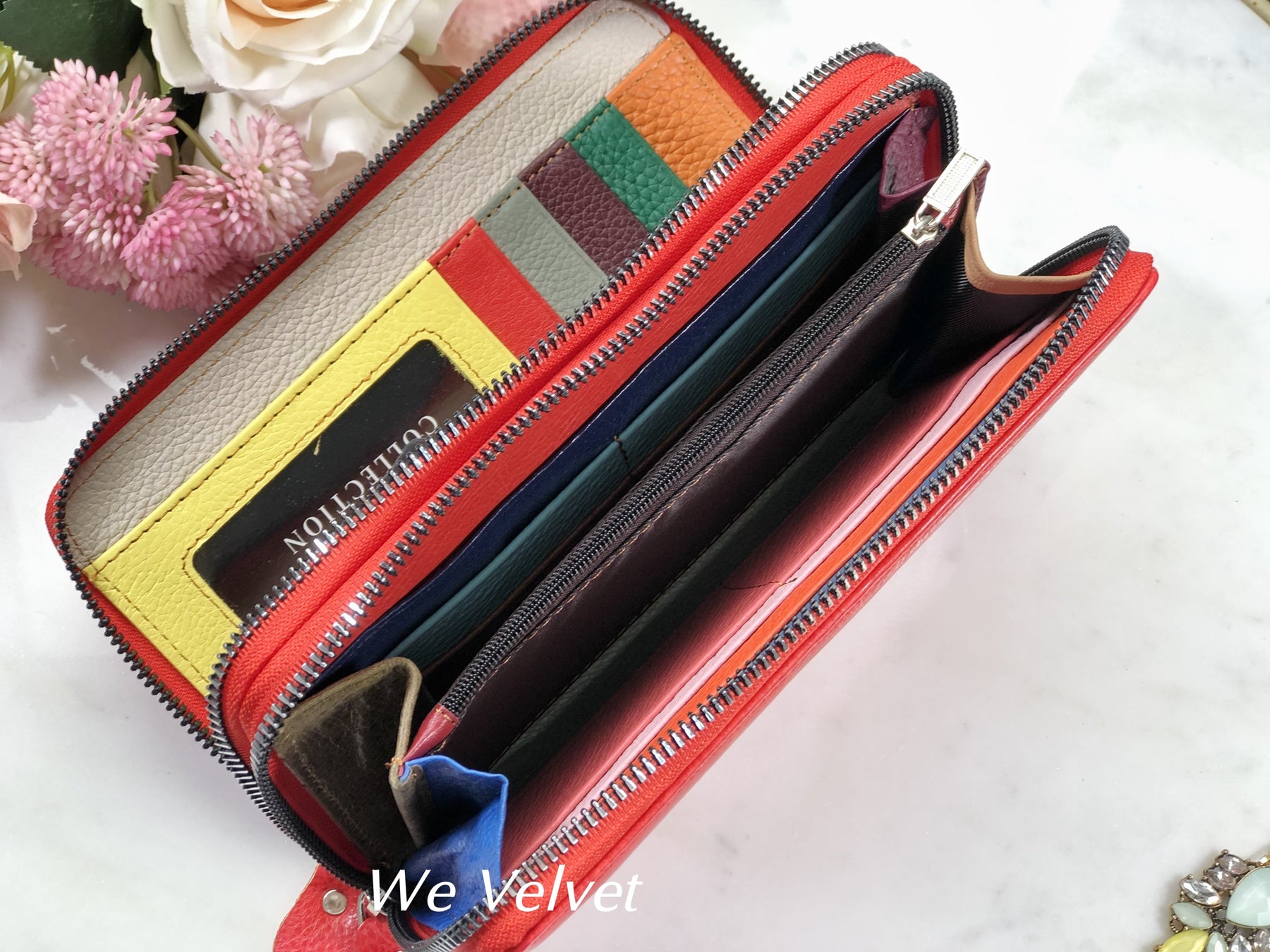 • La interior dispune de 19 compartimente pentru carduri și acte, 6 compartimente libere pentru bancnote și un buzunar cu fermoar