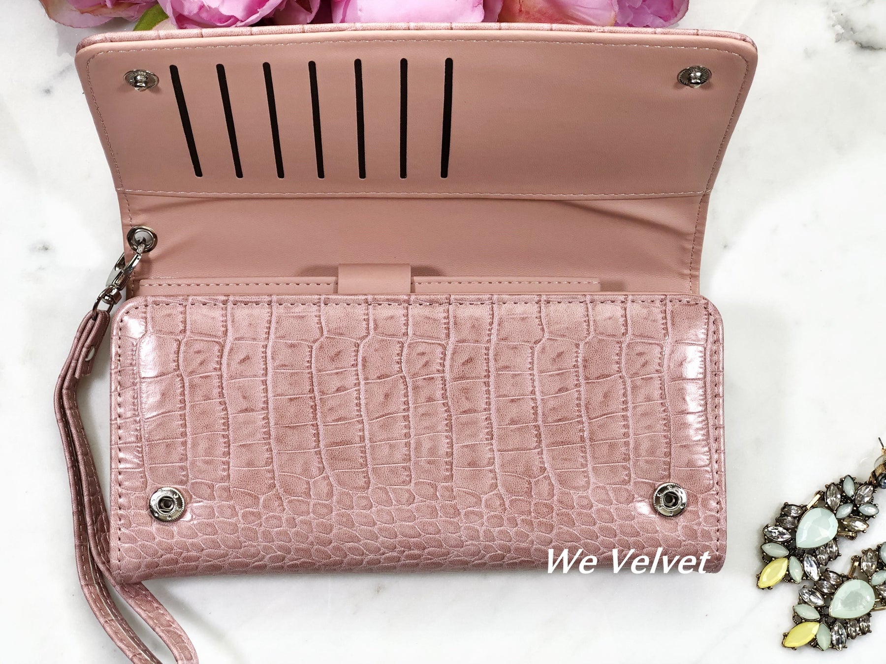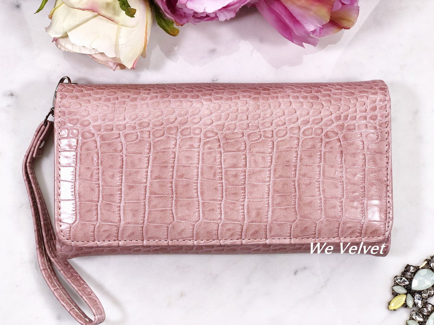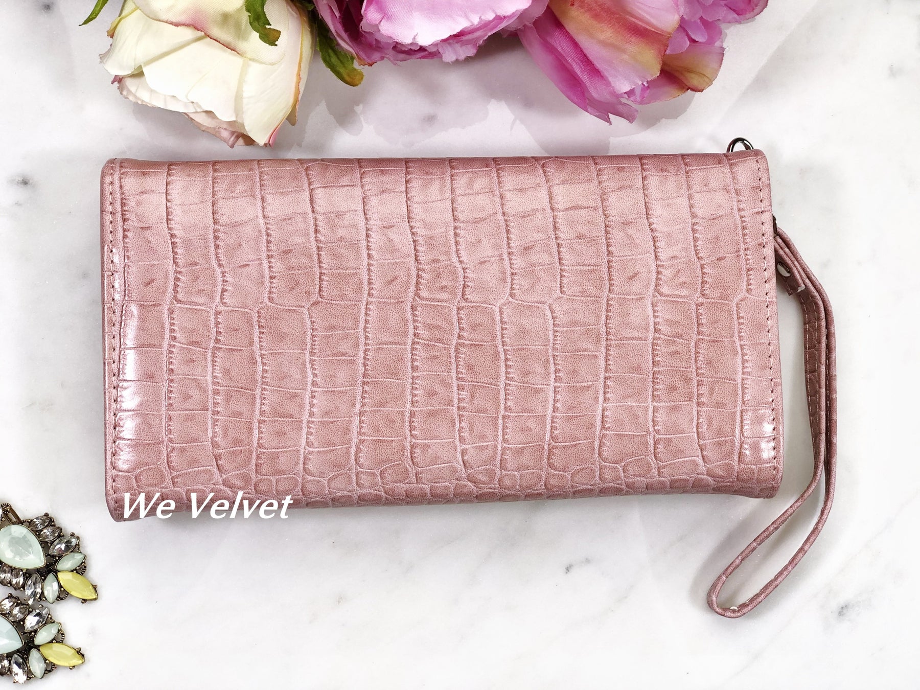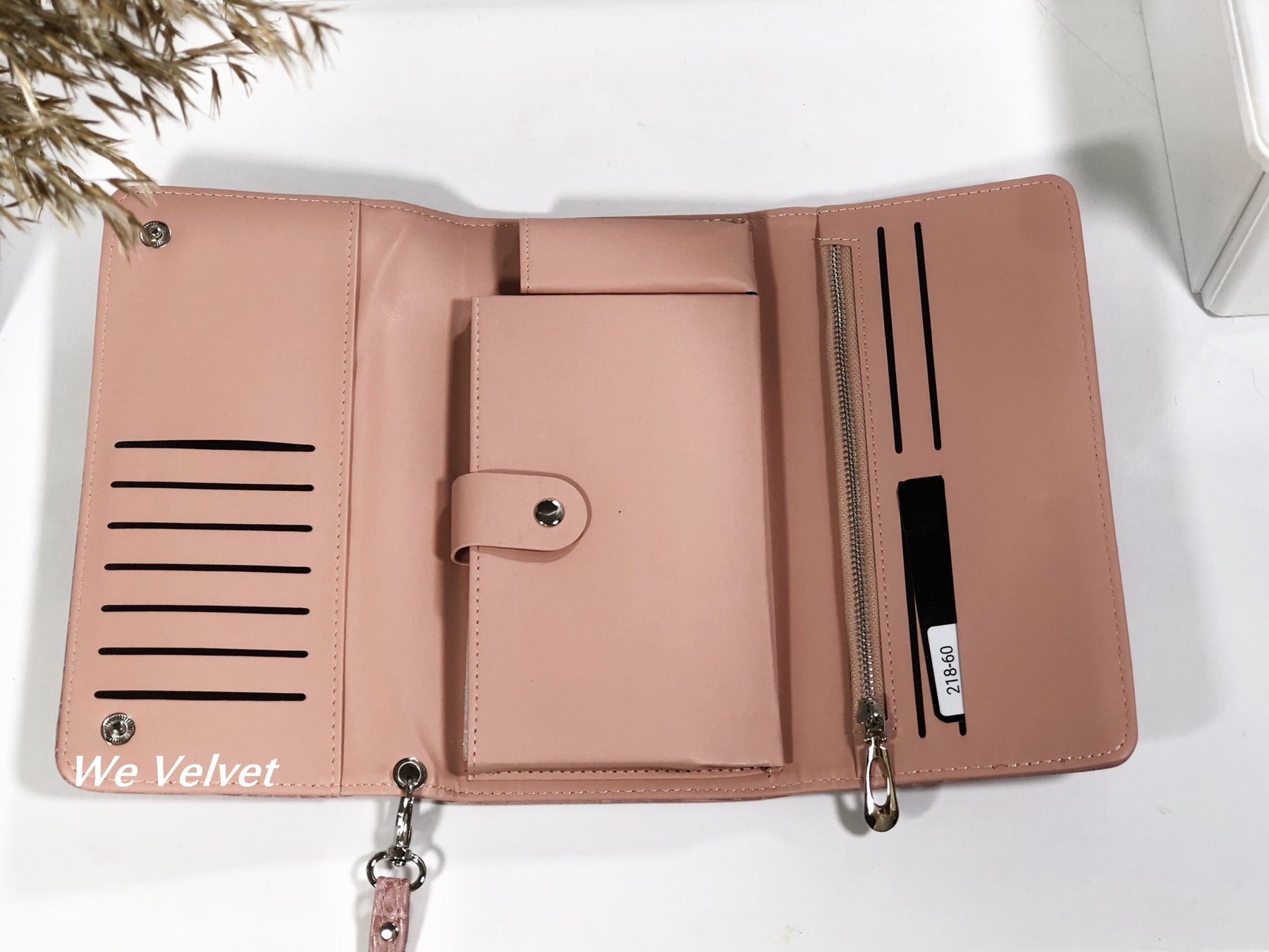 - Dispune de 11 compartimente pentru carduri, 2 compartimente pentru bancnote, un buzunar cu fermoar, un compartiment liber și un compartiment cu capsă.