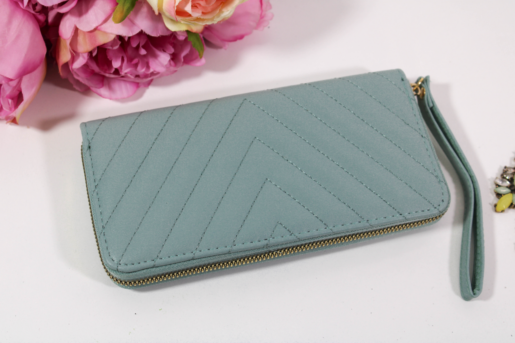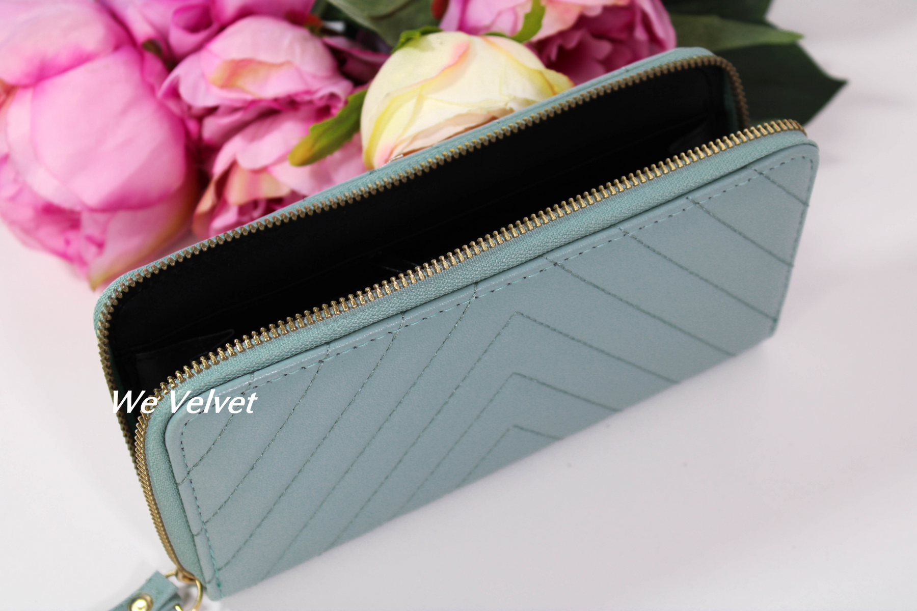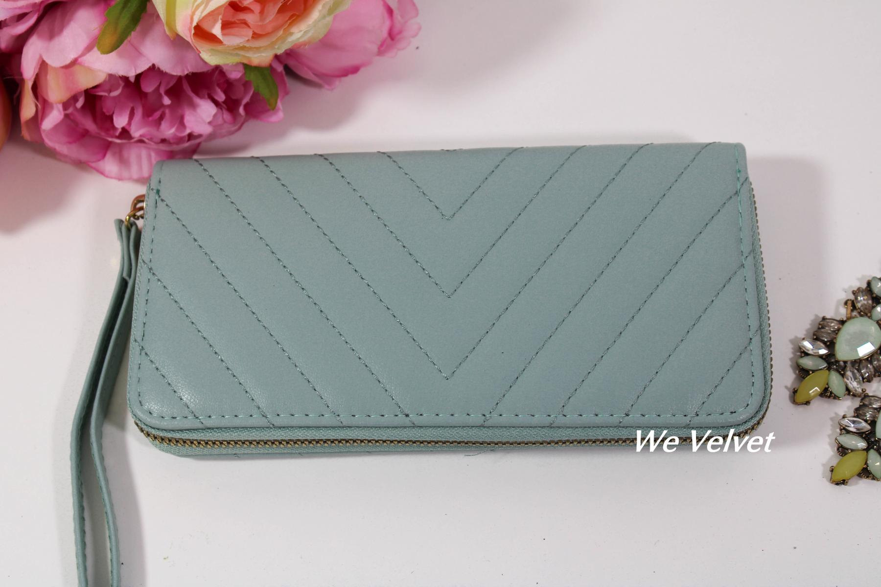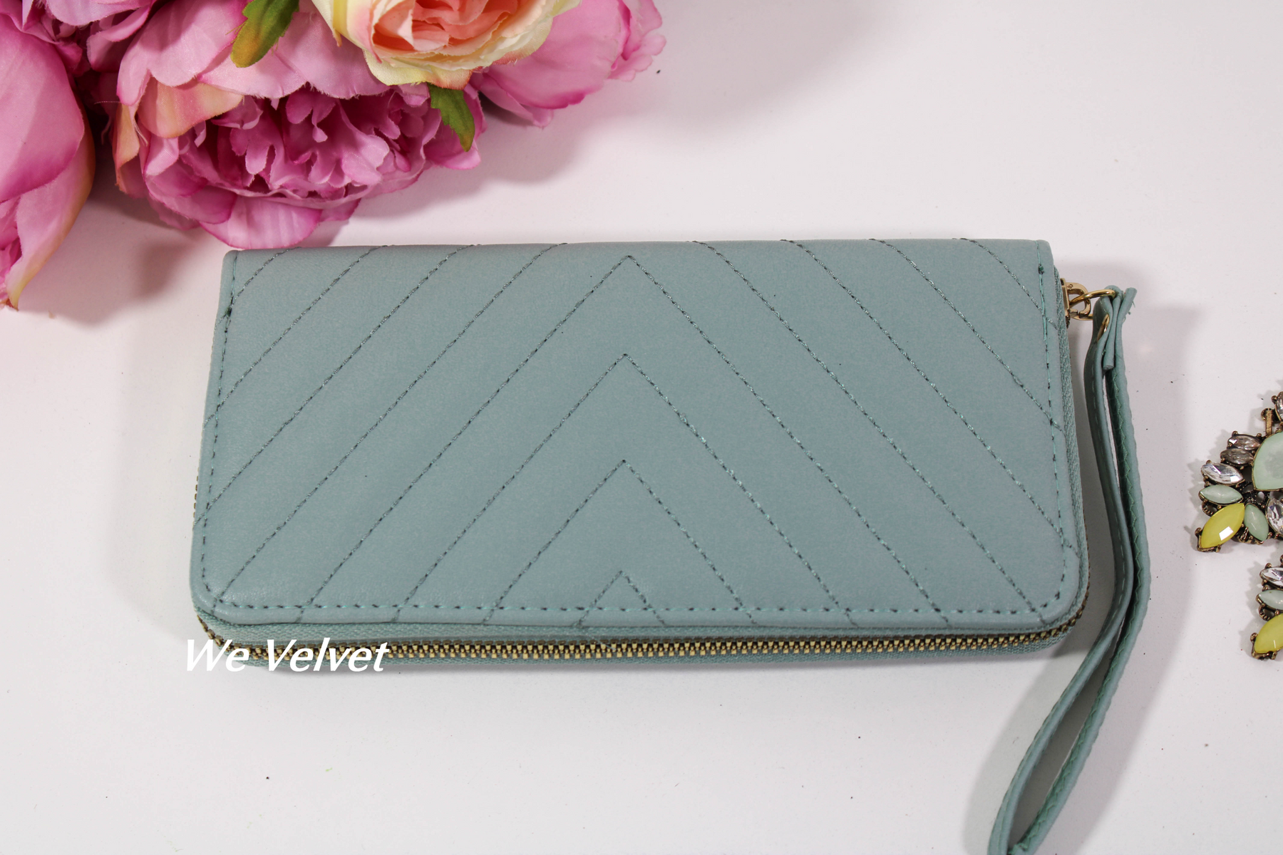 Portofelele We Velvet din piele ecologică sunt confecționate din cele mai rezistente materiale! Modelul Brielle vine însoțit de o baretă pentru mână pentru și mai mult stil și confort!