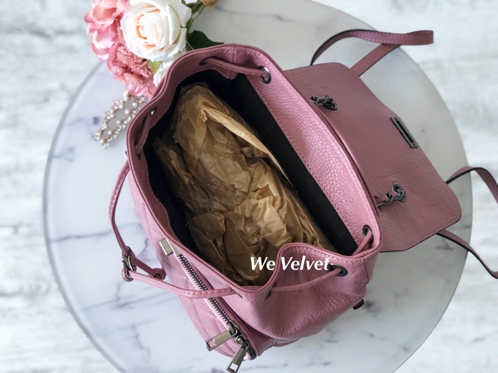 - Rucsacul se închide cu ajutorul unui şnur şi a accesoriului metalic de pe clapetă.
