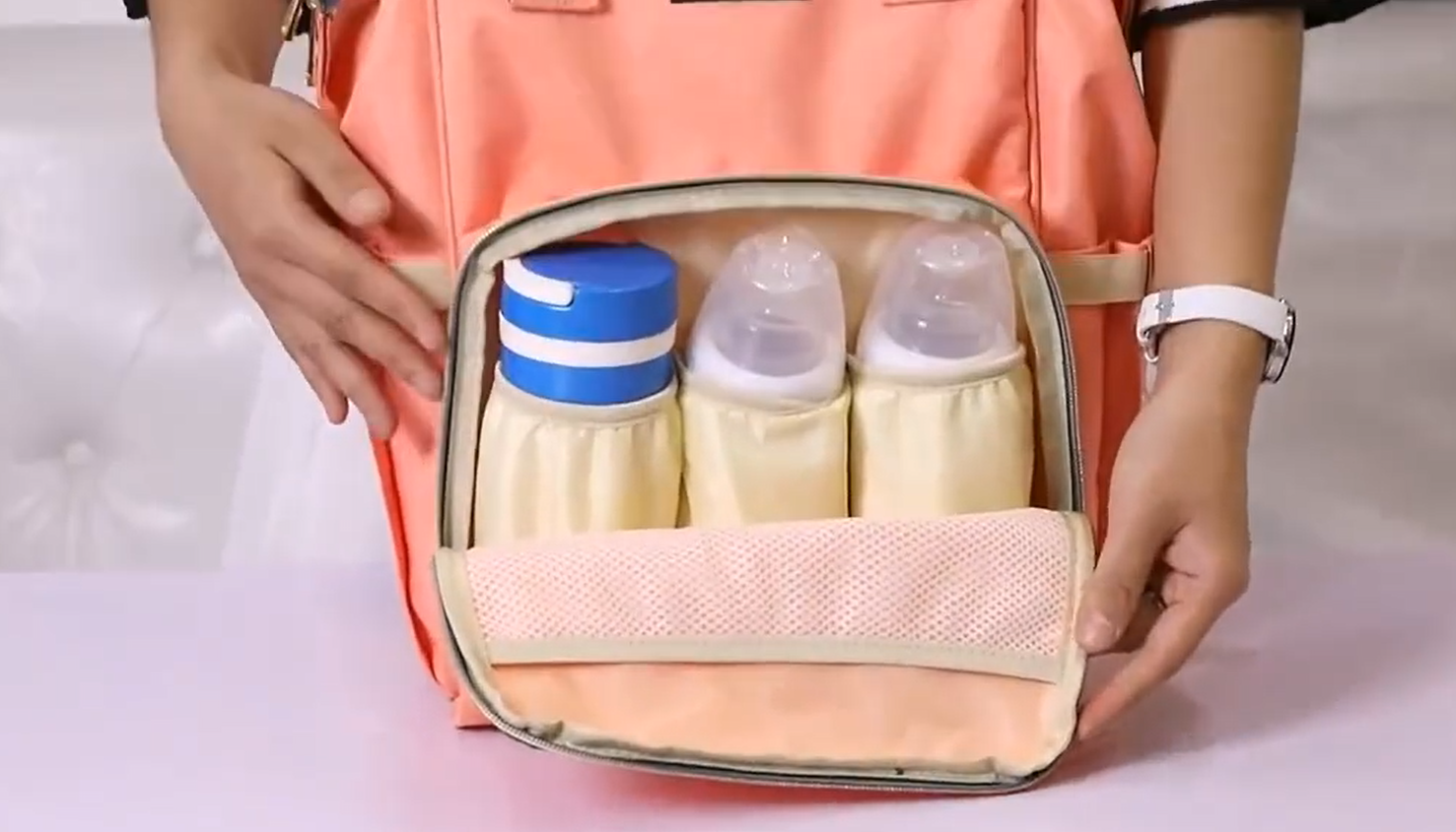 Viața ta este pe cale să devină mult, mult mai ușoară cu acest rucsac multifuncțional! Îl poți purta atât pe spate cât și pe umăr sau în mână cu ajutorul baretelor, pentru un plus de confort. Rucsacul dispune de o mulțime de buzunare utile, pentru toate lucrușoarele de care tu și cel mic veți avea nevoie pe parcursul unei zile: 3 compartimente pentru biberoane, 2 buzunare laterale pentru sticluțe cu apă, 6 buzunare la interior pentru diferite lucrușoare.