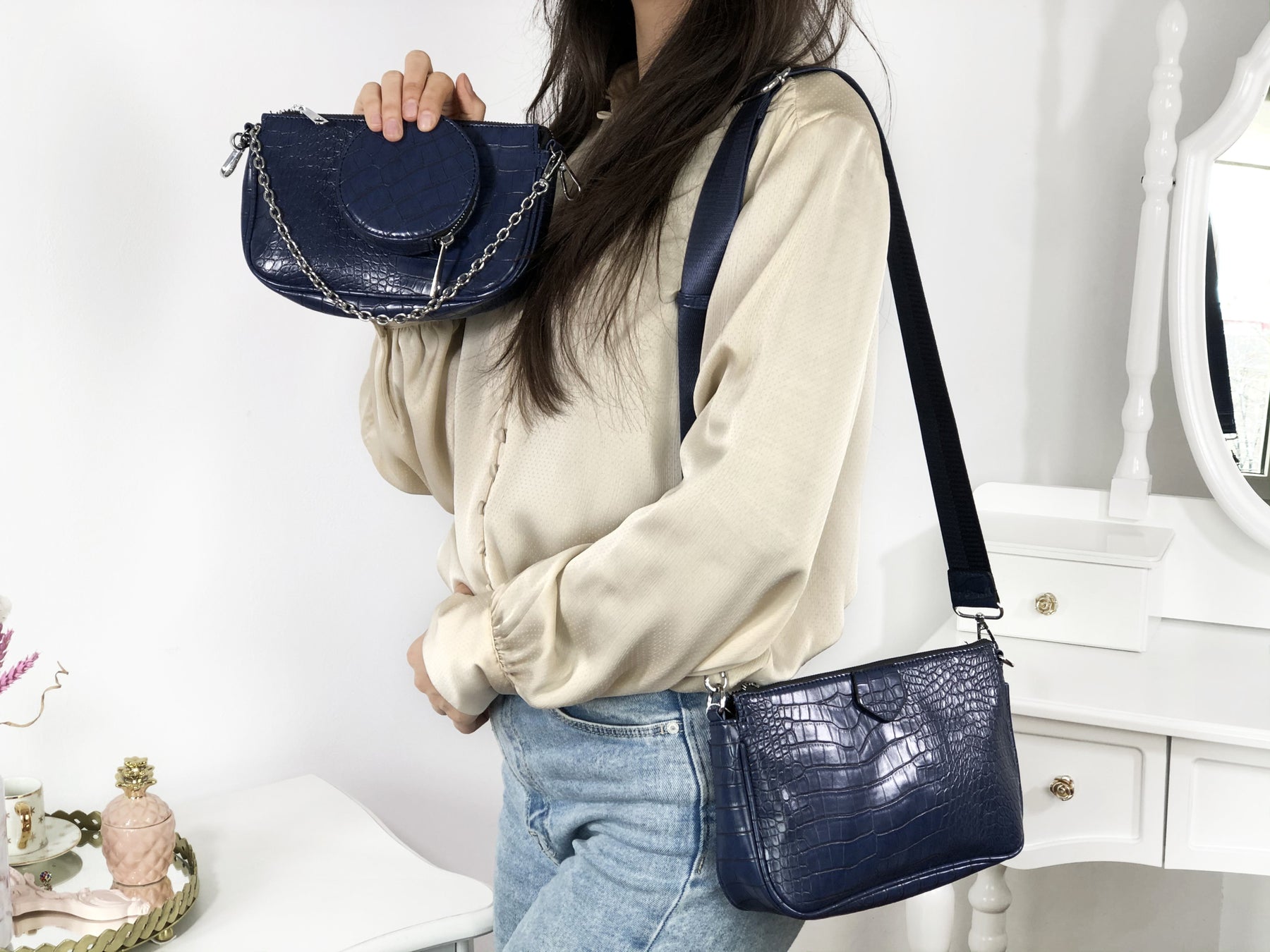 Colecția de trei gentuțe din piele ecologică de înaltă calitate, cu imprimeu croco te va încânta de la prima purtare! Le poți purta împreună, pentru extra spațiu dar și separate, ca borsetă sau mini gentuță și portofel!