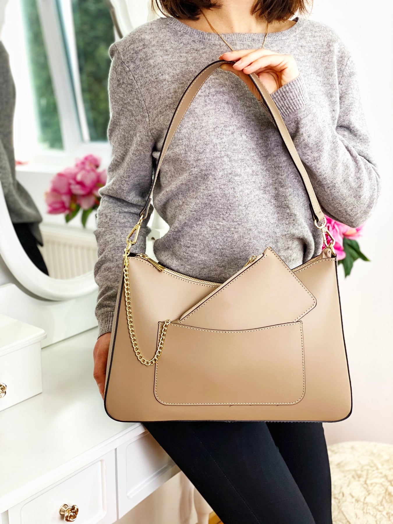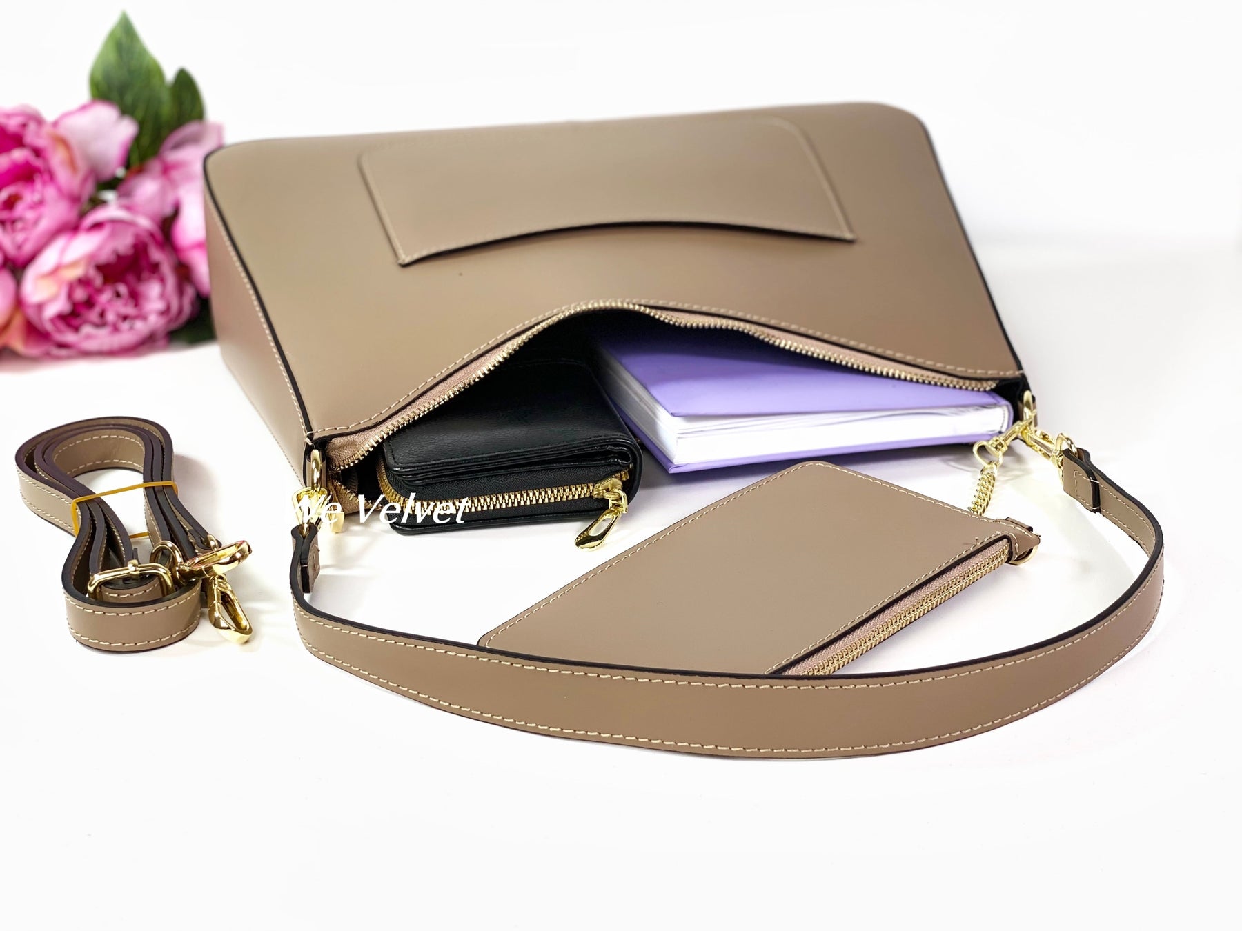 Ți-ai dorit de mult o geantă din piele naturală care să fie și plină de stil, și super practică? Gentuța We Velvet, Carmelina, vine însoțită de un portofel la fel de delicat ca și ea!