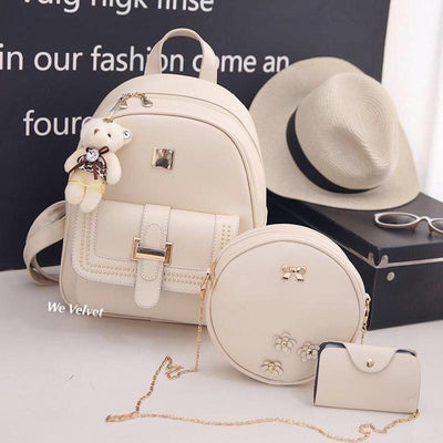 Set rucsac bej deschis piele eco cu poșetuță și mini-portofel Naia