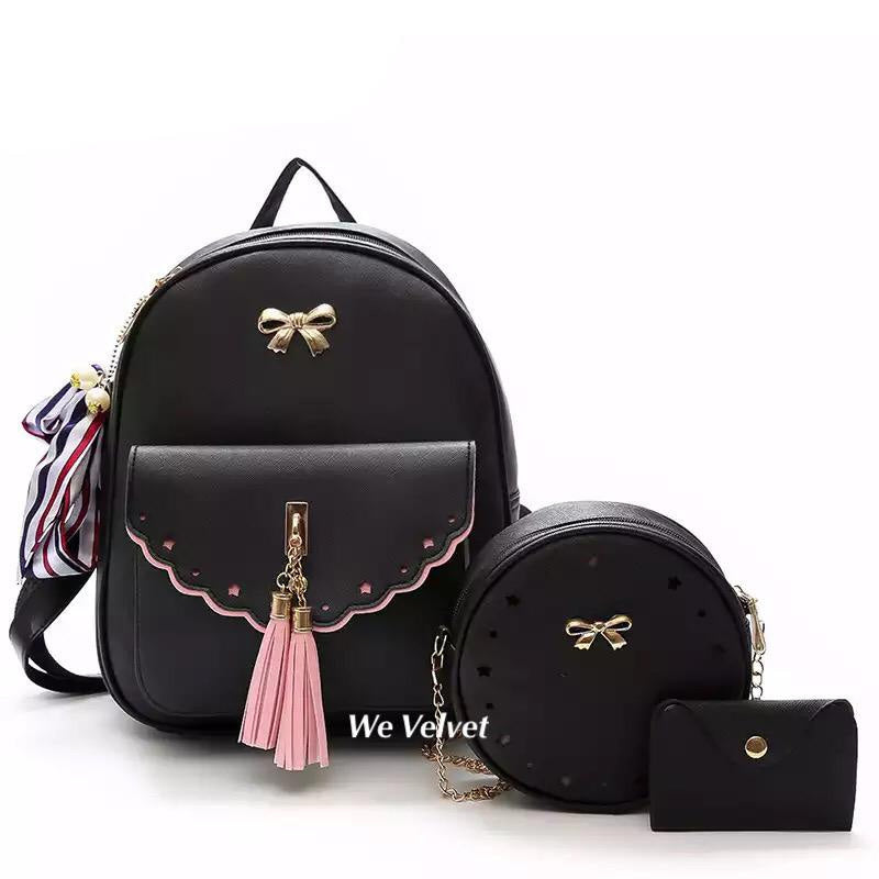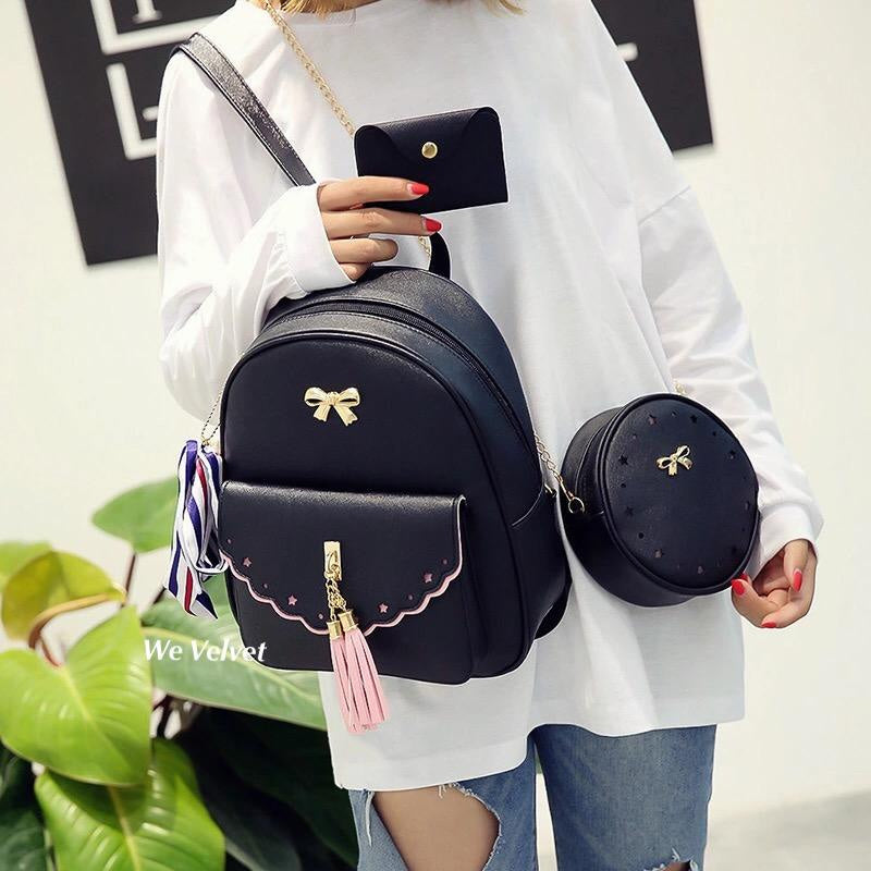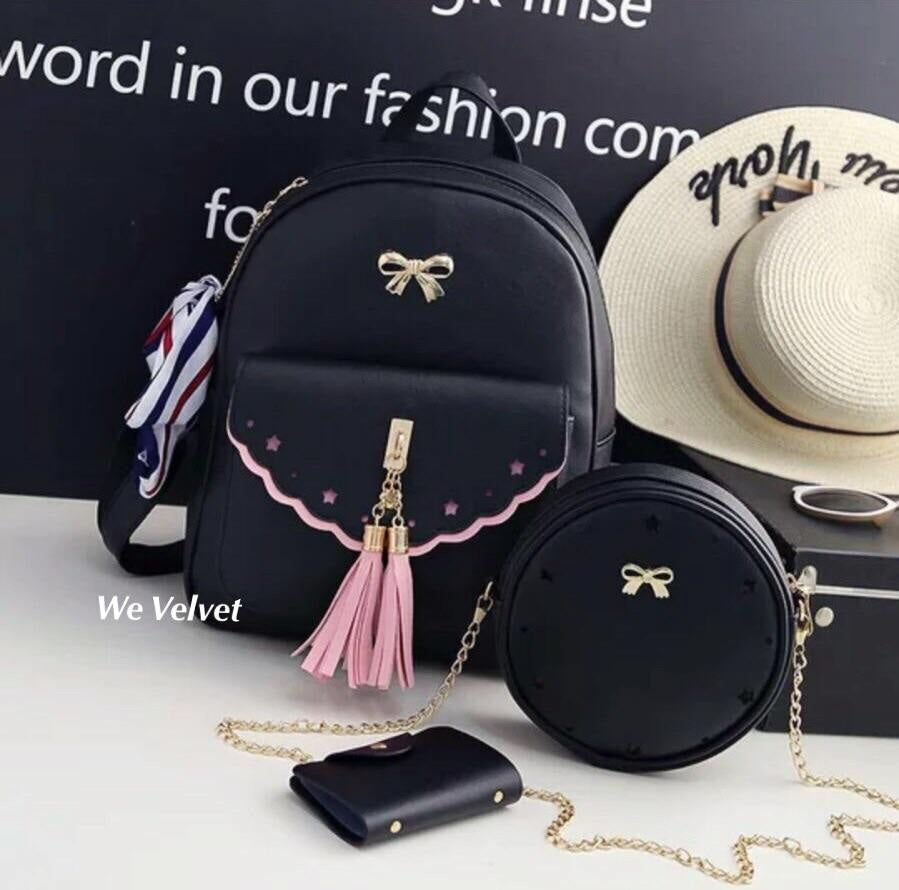 Un set de gentuţe adorabile, care te va ajuta să te organizezi de minune! ❤️Doar setul Schoolgirl va reuşi să te facă să zâmbeşti la gândul că vei putea purta nu unul, ci trei accesorii inedite! Setul este compus din rucsac încăpător şi cochet, o poşetuţă rotundă absolut minunată şi un portofel chic. Ce ai putea să îţi doreşti mai mult? Ştim! O eşarfă asortată, pe care o primeşti cadou la orice set Schoolgirl comandat. Nu mai sta pe gânduri! Un astfel de set sigur te va ajuta să ieşi în evidenţă, oriunde alegi să îl porţi. Iar partea frumoasă este că poţi purta fiecare piesă a acestui set individual. Nu-i aşa că e grozav?