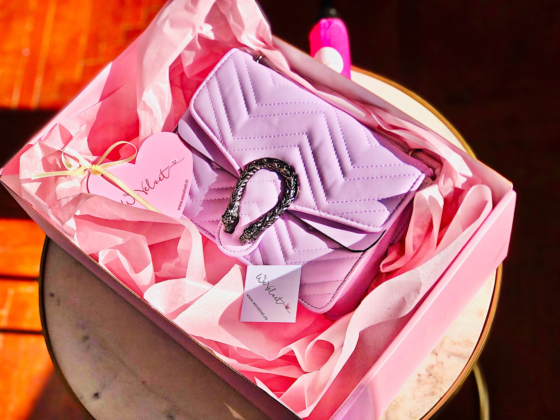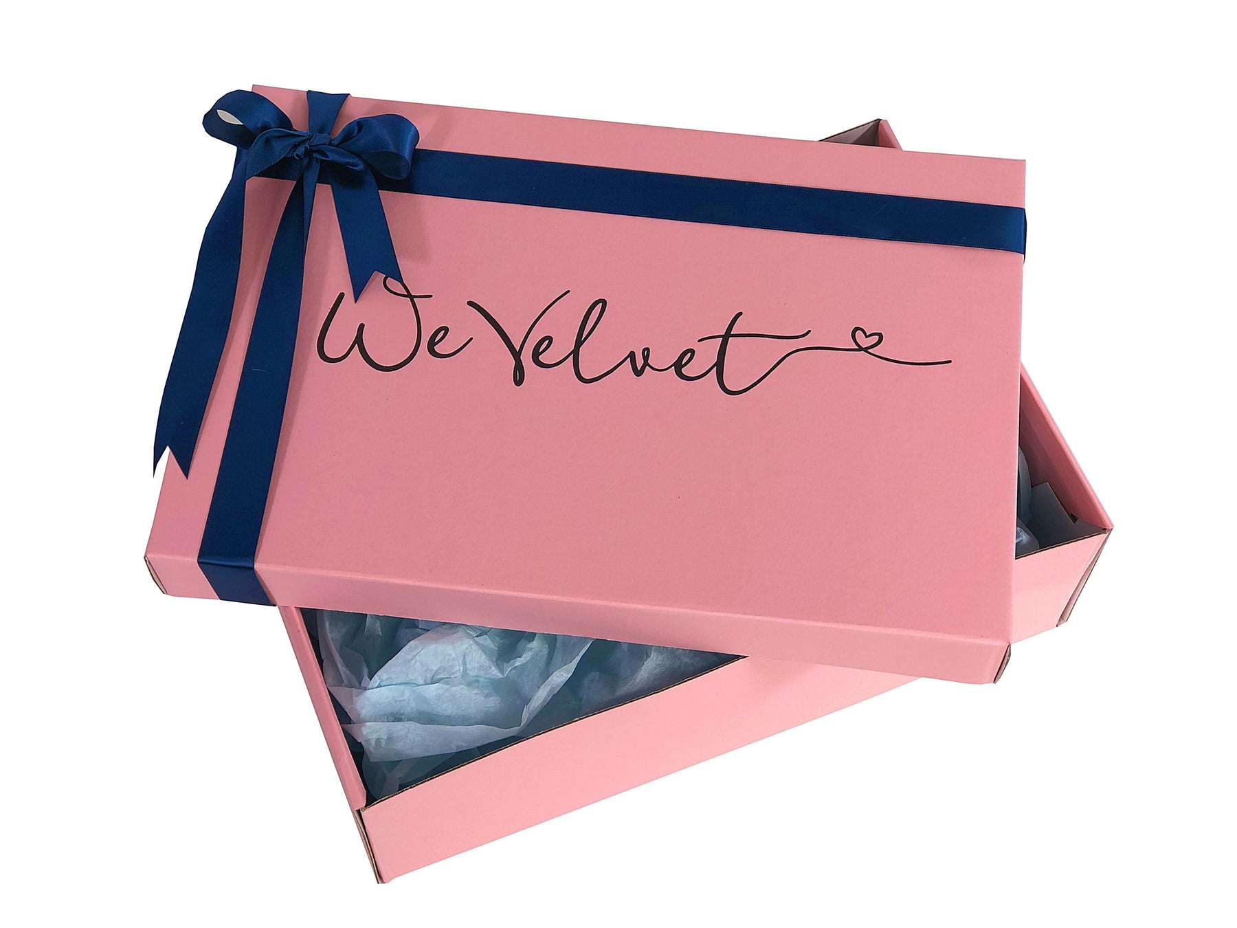 Cadoul ales pentru persoana dragă va fi cu grijă împachetat în hârtie de mătase în cele mai diafane culori! Surpriza ta este în siguranță cu noi, căci un sticker drăgălaș o va sigila până în ultimul moment pentru a nu dezvălui niciun indiciu! Toate aceste detalii foarte importante sunt așezate în We Velvet Luxury Box, în cea mai feminină nuanță de roz! Capacul inscripționat We Velvet este și el decorat cu delicatețea unei fundițe într-o nuanță superbă, asortată cu hârtia de mătase.