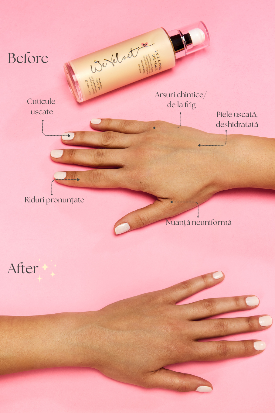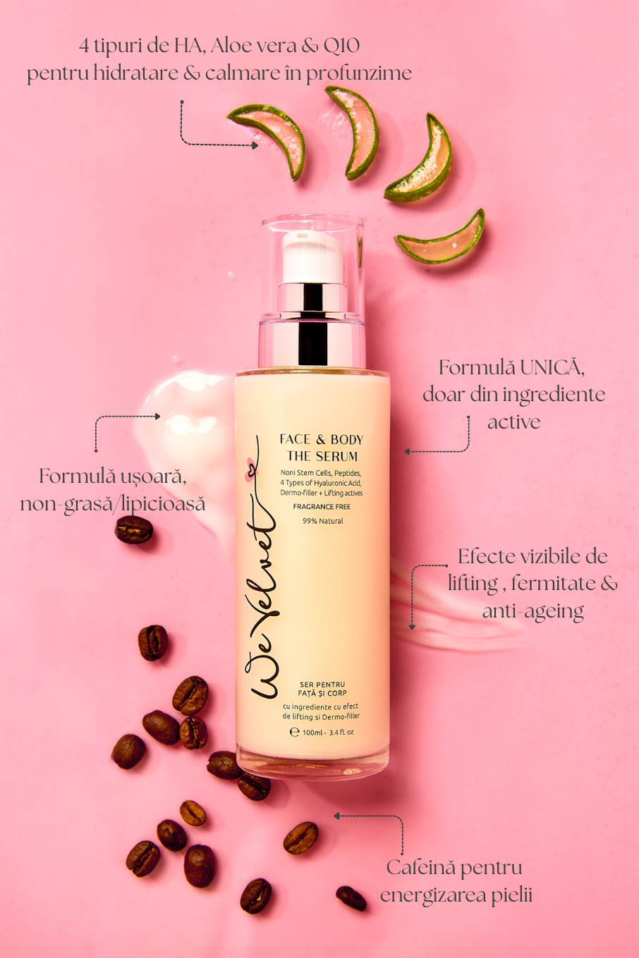 Fii oricând pregătită pentru atingeri tandre cu We Velvet Face & Body The Serum!